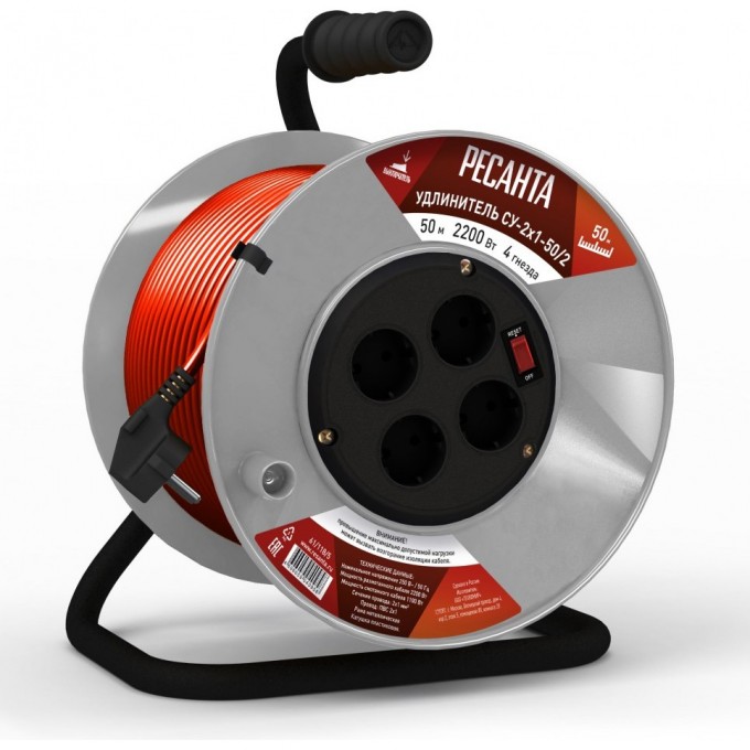 Удлинитель силовой на катушке РЕСАНТА СУ-2х1-50/2 61/118/5